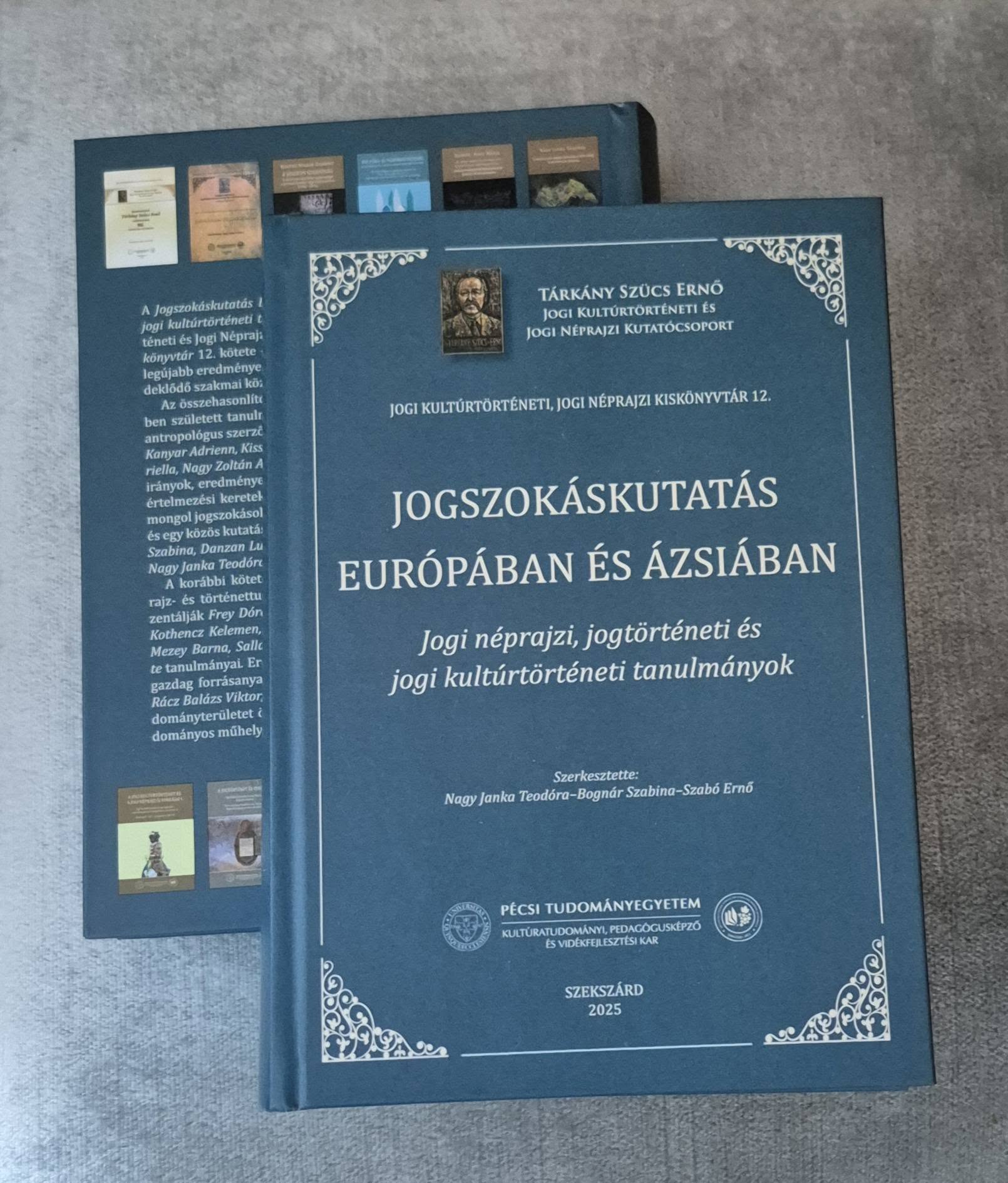 A 2025. szeptember 18-án Pécsett, az MTA PAB székházban rendezett konferencia programjának részeként került sor a Kutatócsoport 12. konferenciakötetének bemutatására. A szerkesztők nevében Bognár Szabina mutatta be a 34 magyar és angol nyelvű jogi néprajzi, jogtörténeti, jogi kultúrtörténeti, történeti, néprajzi és antropológiai tanulmányt tartalmazó kötetet.*„Jogszokáskutatás Európában és Ázsiában. Jogi néprajzi, jogtörténeti és jogi kultúrtörténeti tanulmányok” (Szerk: Nagy Janka Teodóra-Bognár Szabina-Szabó Ernő. Jogi Néprajzi Kiskönyvtár 12. kötete. PTE KPVK, Szekszárd, 2025) (Lektor: Homoki-Nagy Mária, Horváth József, Mezey Barna)*A mára országosan és a határokon túl is ismert kötet szerzői voltak: Azsóth Szilvia (doktoranda, PTE ÁJK Büntetőjogi Tanszék), Bárth János (néprajzkutató, történész, címzetes egyetemi docens, SZTE BTK; nyugalmazott múzeumigazgató, Kecskemét), Bognár Szabina (néprajzkutató, jogász, tudományos főmunkatárs, ELTE HTK NTI; egyetemi adjunktus PTE KPVK), Csáji László Koppány (kulturális antropológus, író, ügyvéd, az MMA Művészetelméleti és Módszertani Kutatóintézet igazgatója), Danzan Lundeejantsan (Doctor of Legal Science (Sc.D), professor, Shihihutug University), Deáky Zita (etnográfus, ny. egyetemi docens, ELTE BTK Néprajzi Intézet), Domaniczky Endre (vezető konzul, Magyarország Konzuli Irodája, Melbourne; óraadó, PTE ÁJK), Falus Orsolya (jogtörténész, egyetemi docens, Dunaújvárosi Egyetem TTI, címzetes egyetemi tanár, PTE ÁJK), Frey Dóra (jogtörténész, egyetemi adjunktus, Andrássy Gyula Budapesti Német Nyelvű Egyetem), Gelencsér József (jogász, ny. c. egyetemi docens, Óbudai Egyetem), Gendenjamts Khishigbadam (Doctoral student, Faculty of Humanities, Faculty of Social Sciences, Mongolian National University), Homoki-Nagy Mária (jogtörténész, tanszékvezető egyetemi tanár, SZTE ÁJTK, Horváth József (történész, könyvtáros; a győri Dr. Kovács Pál Könyvtár és Közösségi Tér ny. igazgatóhelyettese), J. Újváry Zsuzsanna (történész, ny. egy. docens, PPKE BTK), Kanyar Adrienn (PhD hallgató, PTE ÁJK Doktori Iskola), Keszeg Vilmos (professor emeritus, néprajzkutató), Kiss Anna (jogász, tudományos főmunkatárs, egyetemi oktató, biblioterapeuta, Országos Kriminológiai Intézet, PPKE, JÁK), Kothencz Kelemen (néprajzkutató, főmuzeológus, Türr István Múzeum), Lanczendorfer Zsuzsanna (néprajzkutató, egyetemi docens, Széchenyi István Egyetem), László Balázs (jogtörténész, óraadó, PTE ÁJK), Lovaš Eldina (tudományos munkatárs, Horvát Történettudományi Intézet), Makovnyik Veronika (esztéta, török filológus), Małecki, Marian (professor, Jagiellonian University, Krakow), Matla Gabriella (jogtörténész, vezető‒hivatali főtanácsos, Fejér Vármegyei Kormányhivatal), Mezey Barna (jogtörténész, egyetemi tanár, Széchenyi István Egyetem Győr; professor emeritus, Eötvös Loránd Tudományegyetem), Nagy Janka Teodóra (jogtörténész, etnográfus, tanszékvezető egyetemi tanár, PTE KPVK), Nagy Zoltán András (címzetes egyetemi tanár, PTE ÁJK), Nyári Denisz (Denis Njari) (egyetemi docens, J. J. Strossmayer Egyetem, Eszék), Obrusánszky Borbála (egyetemi adjunktus, Károli Gáspár Református Egyetem), Rácz Balázs Viktor (történész, egyetemi tanársegéd, ELTE BTK; tudományos segédmunkatárs, ELTE HTK TTI), Sallai Balázs (jogász, PhD-hallgató, DE ÁJK), Sendenjav Dulan (Head, Mongol Folk Art and Dance Studies, Professor Team, Mongolian University of Arts and Culture), Smid Bernadett (folklorista, ELTE BTK Néprajzi Intézet, Folklore Tanszék), Szabó Csaba (ókortörténész, valláskutató, egyetemi adjunktus, SZTE BTK), Szabó Ernő (ókortörténész, muzeológus, JPM; egyetemi tanársegéd, PTE BTK), Varga Csaba (jogfilozófus, professor emeritus, PPKE JÁK és ELTE TK JTI), Völgyesi Levente (jogtörténész, teológus, habilitált egyetemi docens, PPKE JÁK)